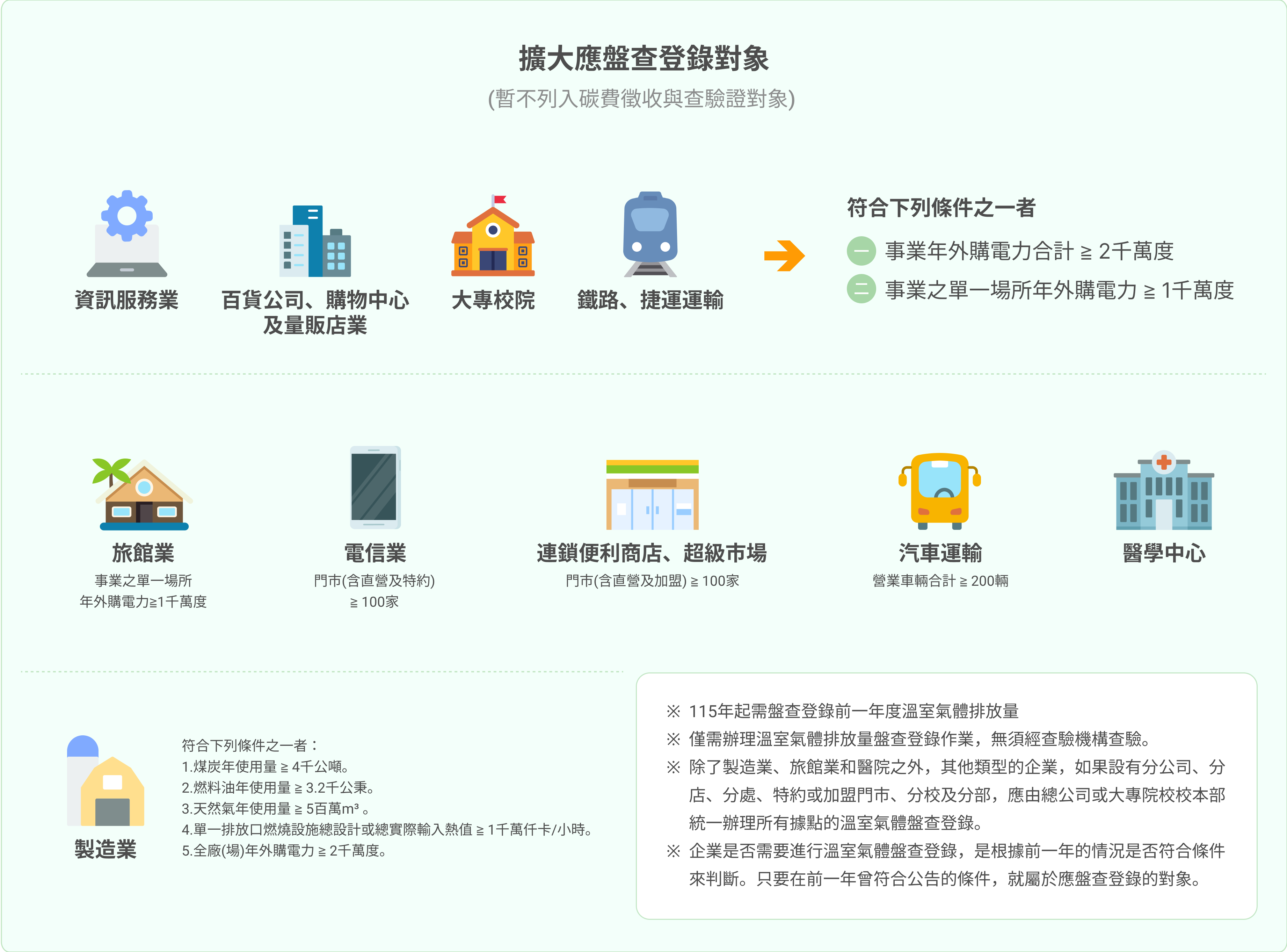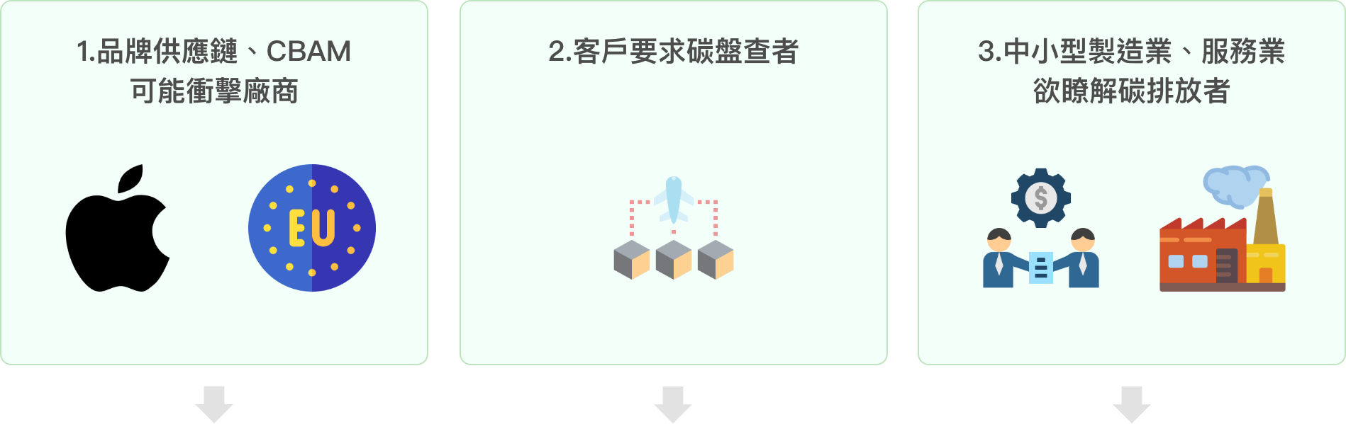 讓產業了解自身的溫室氣體排放狀況,掌握主要溫室氣體排放來源,找出減量潛力,訂定減量做法